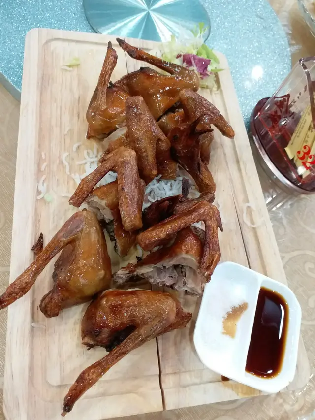 乳鴿炸得不錯,有肉汁,不太乾身胡麻醬鮮淮山幾特別蒜泥白肉卷,另一整法,好食