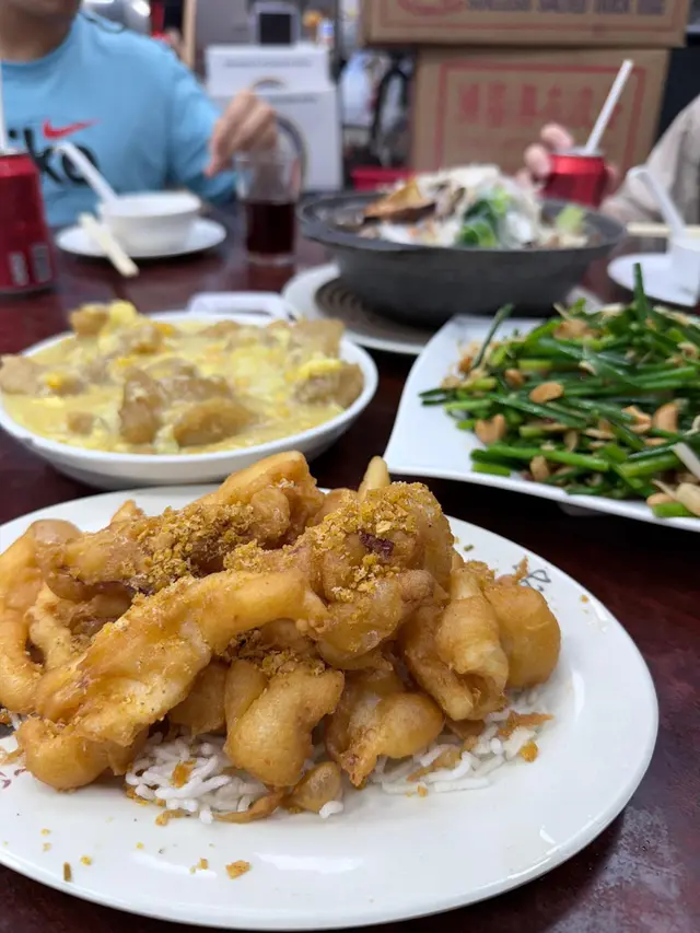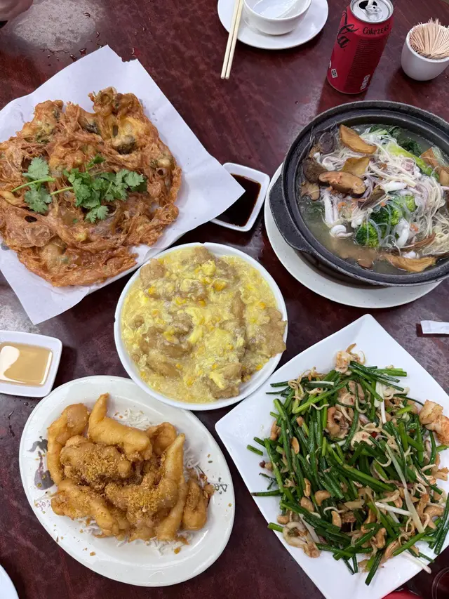 幾位好朋友約埋出黎食飯,聚舊吹水,梗係要揀一間好味又抵食的大排檔啦!**小炒皇**呢道菜用料豐富,有韭菜花、蝦乾、魷魚同腰果。調味啱啱好,唔會太鹹,仲有陣陣鑊氣,令每一啖都惹味得難以抗拒。**黃金鮮魷**新鮮嘅鮮魷裹上一層薄薄嘅炸漿,炸得香脆唔油膩。蛋黃味道好出,鹹鹹香香,再配埋酸酸嘅醬汁,真係一食就停唔到口。**粟米魚塊**金黃酥脆嘅魚塊,一咬即散,裡面魚肉厚實滑溜,鮮嫩多汁。再夾埋甜美嘅粟米,一齊送飯,真係齋講都流口水!**炸蠔餅**嚟大排檔當然要試試炸蠔餅啦。即炸出來嘅蠔餅真係邪惡咁好食,外皮酥脆,而且蠔仔好多。每口都好滿足,令你食住食住就停唔到。**海味雜菜煲**呢個雜菜煲料多味美,裡面有魷魚、蝦乾同其他海味。湯底鮮甜無比,甚至可以當湯飲,暖住個胃。價錢親民,食物質素一流,CP值高到爆,真係值得推介俾大家,下次攞嚟做聚會地點一定無死錯人!#香港味道 #同學聚會 #香港人味道#大排檔 #鑊氣小炒 #鑊氣十足 #香港地道美食 #沙田美食 #沙田好去處 #香港美食指南…查看更多