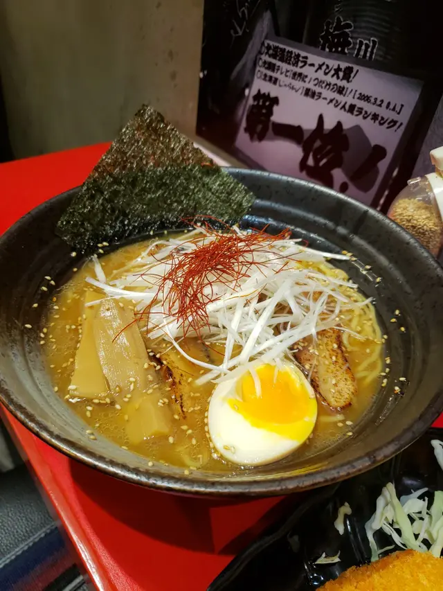 落雨天想食拉麵,行去登龍街係衣間冇長龍,咁就等咗幾分鐘執好枱入去了。舖面細細的,坐到20人左右。我倆二人點了拉麵同小食。。。我點了味噌拉麵半份,好多芽菜,但白烚咁冇味的