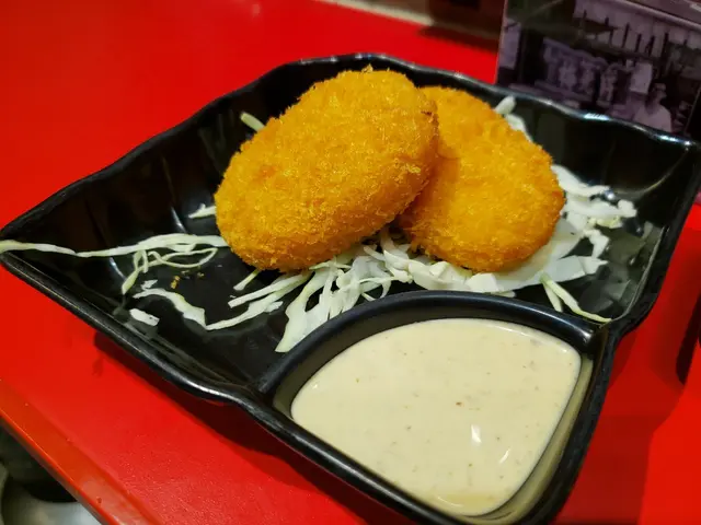 湯一般啦,唔覺得特別濃同冇味噌味,個牌話湯頭係北海道空運過嚟的。。。但真係好一般喎。叉燒同麵都ok的,份量叫半份就好啱女仔食。家丁點了灸燒五花叉燒醬油拉麵,佢鐘意醬油多啲因為比較濃味,但我試咗就覺得有啲豬騷味,五花叉燒就比我個拉麵嘅叉燒好味,肥瘦分明啲同灸燒咗香口啲。點拉麵加$20有2件蟹肉忌廉薯餅同汽水,衣個認真失望,好現成買返嚟嘅感覺,啲忌廉唔香,有添加味,唔好味。另外加$15的3隻餃子同汽水,餃子係全晚最好味的。。。煎得香,肉同菜餡都好夠味。拉麵係失望的,薯餅更不用多提,有乜理由最好味嘅係餃子