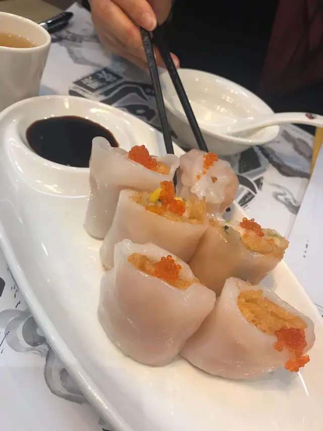 這個春風得意腸,餡料係用咗橙色網狀嘅脆皮包住粒粒蝦肉,每一件上邊仲有幾粒蟹子。點少少豉油,放入口中鮮味即刻衝喉嚨湧出來。通常喺其他地方食到嘅一係就硬一係就凍一係就冇味....呢度就唔同咯,完全符合我嘅要求,簡直係超水準