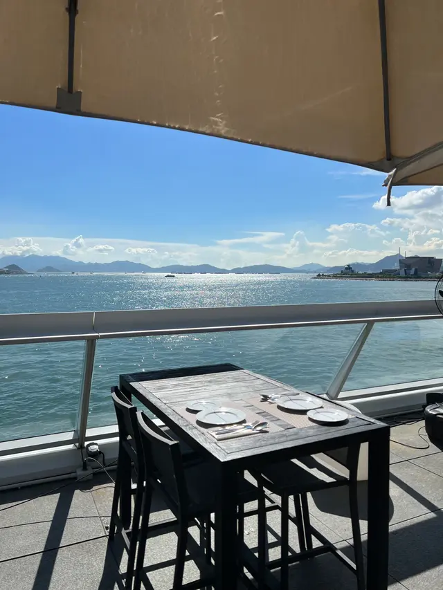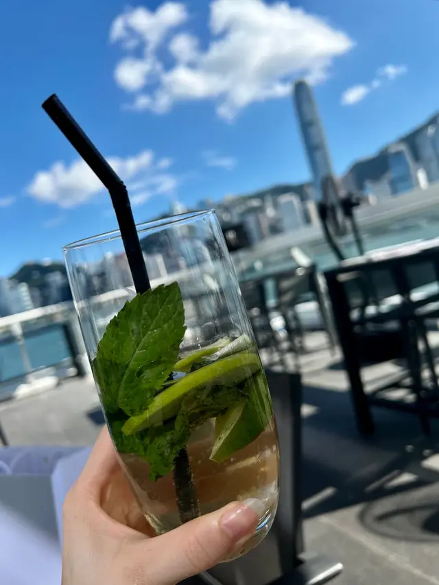 非用餐时段去的,因为天气好,本想找一家环境好,看维港的景观位。果然没有失望,海景是无敌美。吃饱午餐,没有点下午茶set,点了两杯无酒精的莫吉托。还有一份蜜瓜火腿。户外是热🥵,但是有几个很给力的大风扇。坐在户外心情真的太好了。…查看更多