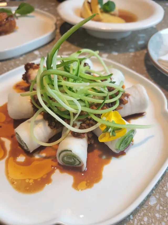 朋友到香港旅遊探親 , 盡地主之誼陪同去尖沙咀睇維港景觀及行商場名店轉轉,歎冷氣。朋友想食上海菜,我記得海港城有間翡翠拉麵 剛裝修完改翡翠 江南,我地提早時段食晚餐 ,好快入坐。店員推介多款菜式 ,選了好幾款小食 脆脆海蜇頭 蒜泥黑豚肉卷 椒鹽小黃魚 黑松露海膽帶子炒飯 小籠包 菜肉雲吞拉麵 擔擔麵 三角海鮮餃。 朋友讚不絕口 海鮮餃賣相一流 朋友都不停打卡拍照。 而且坐窗邊 可觀黃昏日落維港景色。我鍾意食小黃魚 有驚喜 香脆可口 連骨都想食埋。裝修後 格調高檔 價錢相對亦提高,但在尖沙咀旅遊地區都可接受。有海港景 食吓飲吓茶 , 我地行到攰 不停要求加茶水 店員禮貌招待,值得一讚,唔該哂!…查看更多
