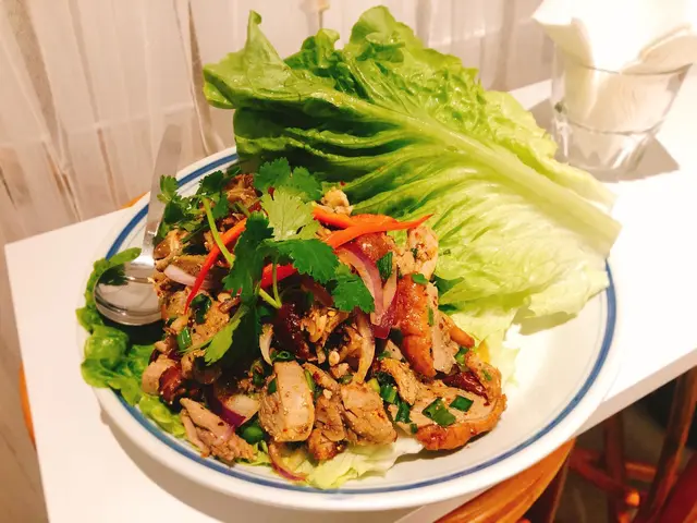 放工行開荃灣吉x島買聖誕禮物,一定食完晚飯先回家,在香車街街市附近找晚餐,今晚我們都想吃泰國菜,在這一條短短的街道上,看到這間鋪頭燈火通明,而且裝修很新穎,店舖是樓高兩層的,我們被簡約白色的門牌及燈光吸引著,看看餐牌原來是新潮的泰國菜館,單看餐廳的裝修絕對想不到這是一間泰國餐館,也找不到服務員穿着任何泰國傳統服飾,很有文清Cafe的感覺,所以我們決定試試吧!生菜肉碎包$98,特別之處,有鴨肉選擇,在出邊餐廳找不到,不吃辣的朋友,會覺得辣,食物味道新頴,好像吃北京片皮鴨兩食的炒片感覺,好得意,中泰合璧,推介推介青咖喱雞$88,椰香香濃,香濃撲鼻,雞件嫩滑,配上烤薄餅$48一流,絕配選擇,烤餅好香牛油味,烤得香脆,而且外型吸引得意,細細粒,一口一件,有八粒,正泰式炒飯$88味道適中,炒到粒粒飯,份量大碟泰式凍奶茶$28絕對擁有泰國本土奶茶的味道,而且還喝得出有豆奶的香味,份量也是大杯來的總括而言,菜式外貌新穎,價錢合理,份量大,環境裝修走年輕路線,有別於一般傳統泰國菜館,座位寬闊舒適,年輕的服務員很親切,上菜速度很快很快,而且價值比高,下次可以試其他菜式,係聚餐一個好選擇…查看更多