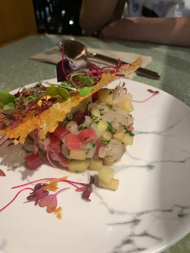 餐廳的裝修設計給人現代又高級的感覺。點了set menu 的牛肉美味燒定食配芝麻醬伴菠菜。前菜芝麻醬伴菠菜,菠菜做成卷狀,外觀不錯,但菠菜似從雪櫃拿出來即上碟,口感太過冰冷,若稍為在室温下先放一下再上碟會比較好。芝麻醬味道不錯。未食完前菜,待應已把牛肉香味燒定食奉上。到吃完前菜,燒牛肉已涼了一截。燒汁呈半凝固狀,肉質也不太嫩滑。令人失望! 服務態度一般,跟餐廳的高級形象不一致,反有點中菜酒樓部長招呼的感覺。總結食物及服務都很一般,跟餐廳格調及食物價格不相稱,不會在再光顧之考慮。…查看更多