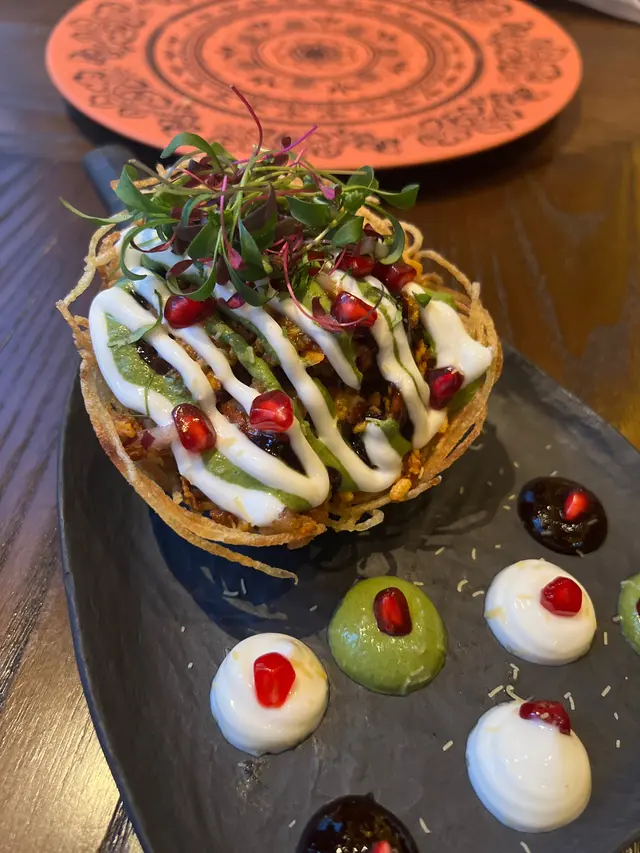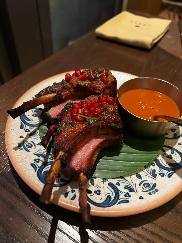 Leela榮獲米芝蓮推薦及香港20最佳餐廳🌟環境舒適寬敞,適合同三五知己享受食物同傾偈😌坐低就送上印度脆片配薄荷醬,淡淡香料味好開胃🤤脆筒塞滿鴨肉絲酸酸辣辣好惹味!混合炸薯籃內饀料鷹嘴豆、石榴及酸甜醬,清新開胃必點!油香酥皮包裹住印度香料飯,加入原條牛筒牛骨髓同軟腍牛面頰肉,即席處理,夠晒儀式感。而且份量十足,夠晒2-3人分享!😋土窯烤爐羊架炭烤味十足,肉質超粉嫩充滿肉汁~朱古力甜品作結,但食唔到咩辣椒味🌶️…查看更多
