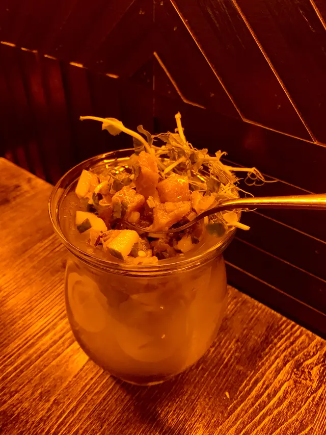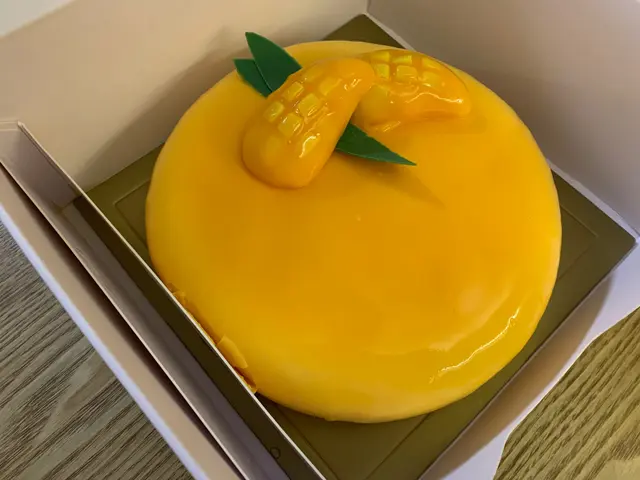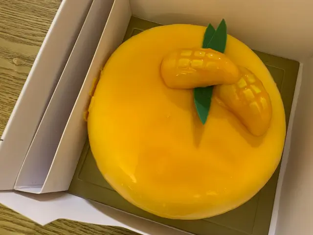 朋友生日,在這家店訂了一個芒果🥭糯米飯蛋糕,$580一個,可供6-8人食用。賣相一般(與這店其他蛋糕、甜點的賣相相比是較沒有特別🙃)。-一打開蛋糕盒,看到蛋糕的其中一邊痴在放冰的紙皮那邊,令蛋糕毁了容😭。應該是蛋糕盒設計問題🥺,可鄰的蛋糕就這樣毁容了😭。-蛋糕中間有微酸的芒果醬,能中和椰子🥥慕絲的甜味。雖然蛋糕沒有預期中的甜,但吃了1/8件,口腔只剩下甜味😓。-椰子慕絲中間有一粒粒像飯粒的東西,吃下去像是未熟的飯粒,感覺很奇怪🤯。-整體來說,這蛋糕賣相非常普通,味道很一般。只是一個帶有椰子味的蛋糕,一點也不像在吃芒果糯米飯😰。吃了一小件,已不想再多吃一件,完全是浪費卡路里的蛋糕😦。…查看更多