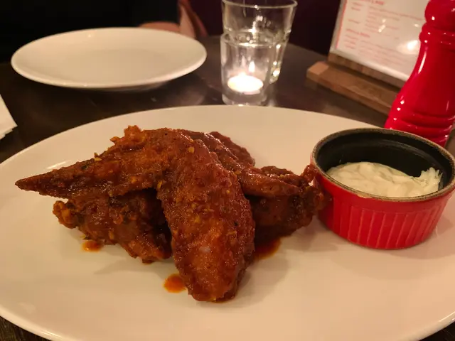 而餐廳裡面就有浪漫美式餐廳嘅情調。原來唔高消費嘅,性價比都幾高。Buffalo Wings - 上檯已聞到香辣味,醬汁濃厚度岩岩好蓋住雞全翼,辣、脆、嫩,好好食。