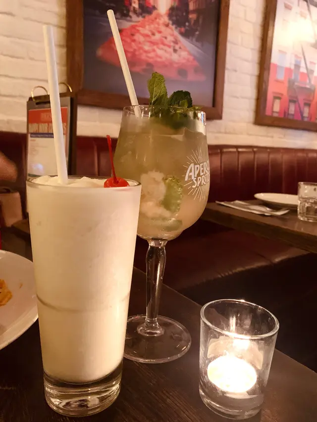 The New York Pizza - 手二手拉餅底,傳統烤法,香脆帶少少煙韌,麵粉味香、仲可以添多啲芝士碎,濃厚拉絲芝士同辣肉腸配搭一流!再食埋甜品飲品,又係一流。Tiramisu無論係質感口感都好好,mousse 香滑唔會好漏、咖啡味濃、餅底同中間都滲滿香甜咖啡酒味。Virgin Colada主要味道椰汁同菠蘿,清甜菠蘿味帶有椰香,順喉唔kick。Lychee Mint Soda感覺清新冰涼,薄荷帶點水果甜味,Mocktail 非常有水準。睇下睇下d menu入面有張kid’s menu,而且竟under 8歲然係free!只須一個main course,真係好難得。…查看更多