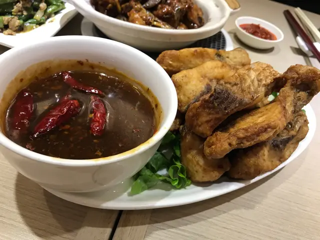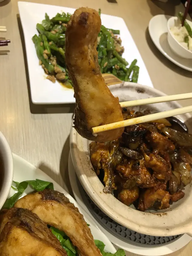佢哋裝修以藍白色為主,簡潔,全都是卡位,但坐位與枱之間較狹窄,肥少少都入唔到去。我哋叫了花膠螺頭藥膳鷄煲,好足料。套餐包了大大條嘅響鈴、炸魚皮、安格斯肥牛、幾款丸類、水餃和自家制嘅釀冬菇和豆卜。飲品又多選擇,唔錯
