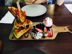 朋友介紹下 今日下午有空便一齊去聚一聚🤗🤗下午兩三點去到 已經坐滿了客人 氣氛不錯 我們等了十五分鐘就有位了 呢到係開放式廚房設計 一入去就聞到濃濃的waffle香味 😻😻 立即食慾大增 哈 我們睇了個餐排好耐 因為樣樣都好吸引🎀香烤番茄芝士烤雞比蕯包呢個係我們唯一叫了的咸食 香濃芝士配番茄的酸味 吾會好heavy 再加上沙律菜 更加清新☺️😋🎀雜莓窩夫賣相好精緻☺️Waffle又香又外脆內軟 配上雜莓雪糕 立即更加開胃 一陣就成份消滅了😎😎🤓🎀茉莉花茶麻糬皮鯛魚燒拼乳酪雪糕好日式的甜品🤗有淡淡的茉莉花清香 而麻糬皮好Q彈 哈哈 大家吾好淨係掛住條鯛魚🐟隔離個杏仁豆腐都好👍🏻杏仁味不會太重 又好滑鯛魚燒配上杏仁豆腐 或分開享用 都不失色 都各有千秋😜總括而言 味道和賣相都不俗 上菜都快🤗但分量就有點少 可能係下午茶的關係🤔🤔😂…Read More