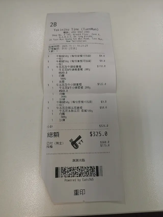抵食燒肉 燒肉時刻 2025-11-26肉嘅份量多 質素都幾好服務態度都唔錯平價餐都有優惠價加配肉一定會食到滿足最平嘅牛肉餐或者豬肉餐嘅肉唔會話好肥仲好好食添十分抵食 每人幾十蚊至百幾蚊就食到飯可以自選份量 唔洗浪費套餐仲包埋沙律/泡菜同湯仲有好多飲品可以加配成日會有優惠活動屯門區人終於有間抵食又好食嘅一人燒烤…查看更多以上食记乃用户个人意见 , 并不代表OpenRice之观点。赞好分享抵食燒肉 燒肉時刻 https://s.openrice.com/QrLT0G5nV00检举 张贴 评分4味道4环境4服务4卫生5抵食用餐日期2025-11-11等候时间10 分钟 (堂食)人均消费$100 (晚餐)