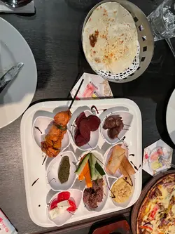 同朋友去呢度試印度野食,見幾多人話幾好就book左呢一間試下可能係平日,一入到去個環境都幾靜幾舒服。周圍有好多印度風既裝飾,感覺唔錯。我地叫左幾樣野食,share一齊食。特色肉類拼盤,上碟靚,九種小食,有好多選擇比你去揀,配一個pita bread,想食既話可以另外再落order。鐵板烤牛肉賣相唔錯,下面鋪左大量既燈籠椒,上枱既時候好香,食落質感好厚實,好惹味👍🏻BBQ鷄肉pizza個汁甜甜地幾吸引。pizza既餅底厚度適中,唔會話一咬落去成口粉。成個pizza焗得夠,所以好香口。千層麵比我地想像中大份,上枱既時候聞到好香。個麵用左好多蕃茄醬同肉醬,但係食落唔會膩,旁邊仲有沙律菜配埋一齊,令口感好清爽。海鮮炒飯就係咁多樣入面我覺得最好食既。個炒飯好香口惹味,但係偏辣。食到辣既人就冇問題,食唔到辣既就唔太建議啦。4個人叫左4杯野酒,平均每人250我覺得都好抵,值得推介…查看更多