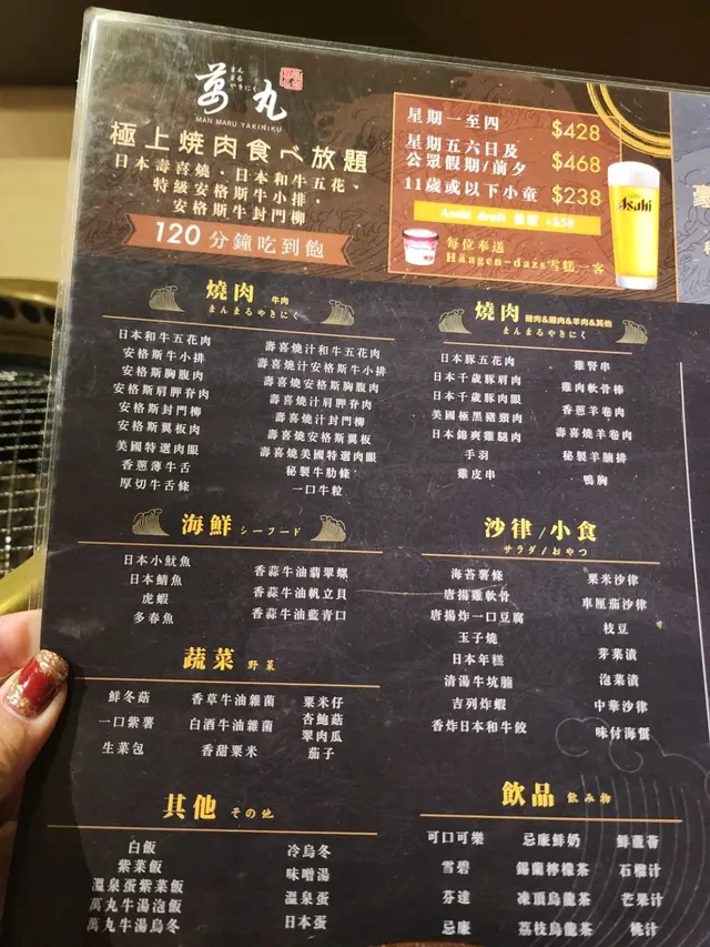 好味+高質 萬丸燒肉 2023-10-24朋友推薦!🤗星期日晚我哋揀左468set,牛肉款式多,味道一流雞髀肉,虎蝦,帆立貝,海蜇都好好味環境舒服,座位寬闊😆可借係無提醒cut單,原來餐廳會提早30分鐘cut單…查看更多+ 6以上食记乃用户个人意见 , 并不代表OpenRice之观点。赞好分享好味+高質 萬丸燒肉 https://s.openrice.com/QrLT0p9LD00检举 张贴 评分5味道5环境4服务4卫生4抵食用餐日期2023-10-22用餐途径堂食人均消费$500 (晚餐)