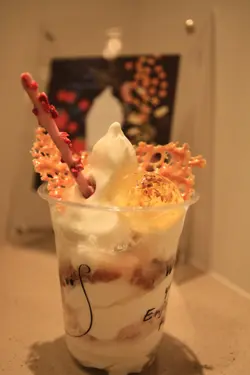 特意出銅鑼灣購物,本來打算順便朝聖,但卻過了兩次號碼=.=始終無緣咖啡弄。本就不太肚餓的我倆選了另一間也以窩夫作賣點的cafe .居盧,中式門面,店內大型中式裝置,西式裝潢家具,西式燈飾,賣的是西式飲品食物,頗玩味的感覺。這店實在太精緻,店內3張枱,店外2張,加起來最多才不過可以招呼20位客人。名副其實的小店內裡卻設備齊全,水吧枱裡的瓶瓶罐罐堆得滿滿的,咖啡機旁並列著3坐啤酒機,奇怪的配搭卻又很有特色。來到店面看見客滿了本都想放棄, 但陣陣窩夫香氣卻令人不想移步,幸而等了一會已有客人離坐,只有6度的氣溫還是坐室內的好,室外喝咖啡的風味還是留待下次。兩個人點了1客香蕉朱古力窩夫,1杯Honey Latte ,1杯Somersby Apple Cider 香蕉朱古力窩夫: 窩夫一面脆一面軟,配上香濃的味道,好吃 :) 配料沒特別,香蕉片(有點生),朱古力醬(Hershey.'s即食那種),朱古力雪糕(小店的味道,維記大筒裝?!)Honey Latte :熊熊模樣很討喜,奶泡打得夠挺也滑,咖啡味不夠香,也喝不到蜜糖的味道。Somersby Apple Cider :第一次喝tap out的Apple Cider,感覺比樽裝還濃郁,很好喝,跟男友爭著喝呢,500cl也不算多店子雖小,1名咖啡師1名waiter 也忙過不停,不過到cafe 休閒也沒需要趕時間,服務也算很好。店裡衛生狀況很好,難得廁所也裝修得別有心思,而且乾淨非常。有空會再來試all day breakfast :)…查看更多