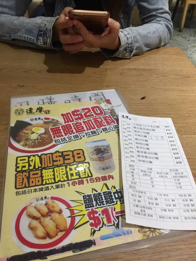 看到這裹這麼多人排隊以為很不錯 等了一個多小時進去 一看餐牌有些特別湯底如牛奶底或laksa底己心知不妙 這些在日本沒看過算我沒知識 而任食一項通常都是以大食夾抵食作招倈帶點伏味 所以只點了一個豬骨拉麵和枝豆 說實話 味道一般 麵和豬肉份量較大埔一嗚小 湯有微量味精 它主要以加錢任加豬肉麵蛋及飲料 現場所見所添加的麵不連湯以碟送出 其他東西添加份量極少 所以很多人點一元雞翼 如果你吃過真正日本拉麵 不用來這裹 如果為了任食而來 附近還有很多選擇…查看更多
