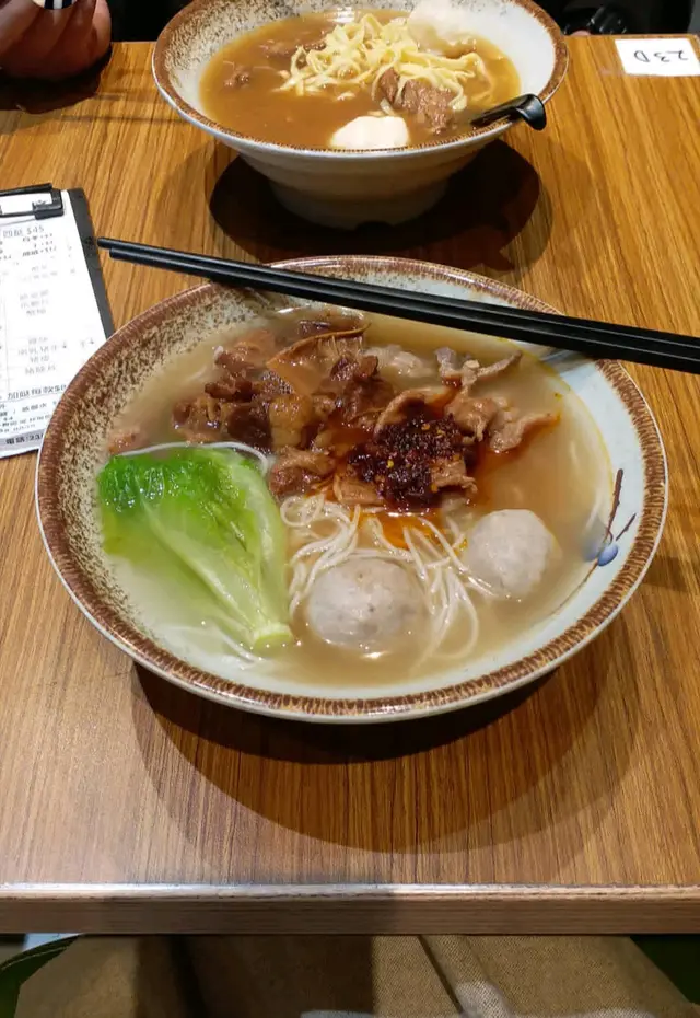 呢間車仔麵分別有兩餸三餸同四餸畀人選擇, 一般車仔麵嘅配料都有。比較特別嘅係有一款叫做薑汁皮蛋貢丸, 咬開粒丸裏面有好濃嘅薑汁, 皮蛋就唔太多覺有。麵底都係幼麵,油麵,粗麵,米粉,河粉,米線。不過今次去食就話冇米線, 所以就轉咗米粉。所謂嘅豬骨湯底唔算好濃味, 額外加咗腩汁同辣汁先叫做有返啲味道。牛腩都算係入味嘅, 不過咬口就麻麻地。沙爹牛肉完全冇沙嗲汁, 純粹係普通用梳打粉 醃過 嘅牛肉浸落個湯, 容易咬,不過就好無味道。整體嚟講 比較失望, 可能普通一間茶記嘅湯粉麵仲好食啲。只此一次 ,永不再嘗試。…查看更多
