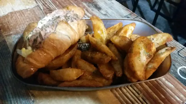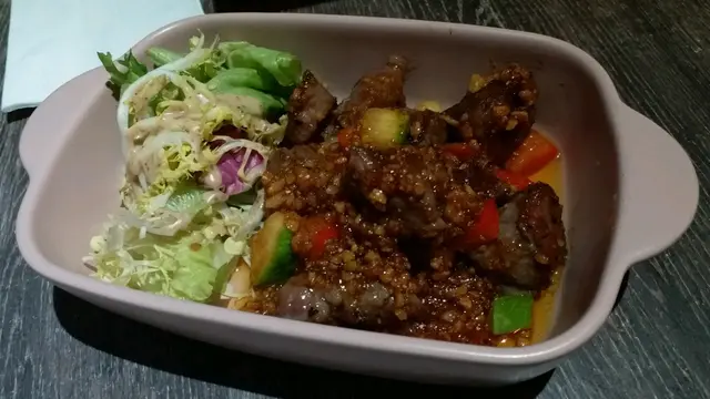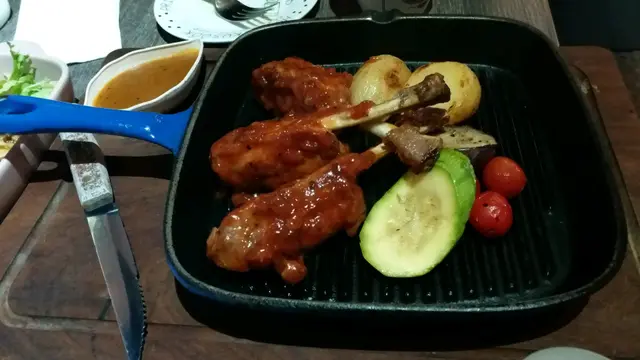 用openrice預先booking, 會有discount優惠, 今次係晚餐有正價六折雖然位於旺角, 但係個地點有啲吊腳, 唔算話好偏僻, 不過都有啲難搵六點半前到達加提早訂位,都會有discount優惠。兩個女仔 嗌咗兩份小食, 兩份主食, 加兩杯飲品。蒜香一口牛, 濃沃嘅香味,牛肉入口煙韌, 跟沙律菜, 感覺都幾好食。吉列蟹肉忌廉薯餅, 口感都幾好, 新鮮熱辣炸起, 香脆可口。黑松露雞肉意大利飯, 略嫌個飯煮得太淋, 但味道清清地都算唔錯, 而且配料都算唔少, 不過不失啦。鐵板bbq燒豬腿 本身有燒烤汁, 另外再跟多個醬汁, 肉質都幾好食, 不過如果醬汁再多番少少就好啲, 因為鐵板好快燒乾哂啲汁。玫瑰鮮奶咖啡, 兩個女仔都心有靈犀咁揀咗呢杯飲品, 當侍應送上咖啡時, 見到個拉花圖案係有啲小驚喜。餐廳裏面啲壁畫都幾靚環境都算唔錯, 都值得再去試多次…查看更多