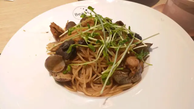 荳子餐廳一向都幾出名, 不過次次都好多人等位, 就連平日都唔例外。Lunch hour 過左都座無虛席, 入嚟用餐嘅人客一直絡繹不絕。今次試咗黑蒜帆立貝蜆肉意粉上枱嘅時候唔夠熱, 大概只有七至八成熱, 味道略嫌淡咗啲, 海鮮煮得比較乾,冇哂味道, 啲蜆仲有啲沙。有期望之下比較令人失望忌廉蟹肉炸薯餅蟹肉都幾入味, 但係分量少咗啲, 不過味道都唔錯。芝士肉醬薯條普普通通啦, 如果啲肉醬同芝士粉用焗爐就會較入味。Stone(甜品) 芝麻配上熱情果嘅甜品, 清清地味道都算唔錯。Lychee lover ( 荔枝味甜品)入口幾有驚喜, 好fruity 同埋 酸酸甜甜, 食完令人有種精神同埋開心嘅感覺。檸檬蜂蜜有凍飲同熱飲選擇熱飲嘅檸檬蜂蜜飲得出蜜糖味, 而唔係平時嗰啲糖水溝出嚟。…查看更多