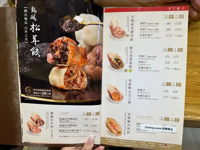 放假同男朋友行街,行到攰攰地好肚餓,咁啱經過餃子店見下午茶時段唔使排隊,直接入咗去食。既然主打係餃子,冇飯冇麵諗住餃子要叫多啲先夠飽啊,打開餐牌發現有好多唔同款式咁佢哋招牌係主打松茸餃子咁一於叫佢最出名嗰兩款龍鳳松茸煎餃同至尊松茸煎餃,另外叫多一款普通嘅餃子雲耳椰菜豬肉湯餃完全睇少咗佢哋嘅份量,以為餃子會好少,所以仲叫咁多佢兩款松茸餃子入邊餡料十足,每隻都脹卜卜,食一碟已經好飽,同男朋友兩個人仲叫咗三碟餃子