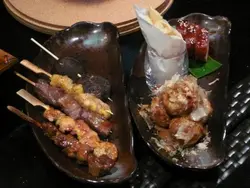串燒蠔仔、串燒八爪魚丸、 咖喱蛋白花竹蝦