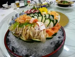 一大班朋友突然話去西貢食海鮮,好彩打電話去有得book位,成12個人,比左張二樓大台我地。前菜食左D沙薑雞腳,MY飛佛,食左兩隻,哈哈。跟住即上魚生盤。D魚生超新鮮,件件都好厚,個蝦加青瓜好FRESH,D象拔夠爽口。三文魚好厚一片!!大家食LEE盤魚生既速度係要用極速黎形容,HAHA~跟住黎左碟燒鵝,因為其中一個FRIEND話LEE度D鵝好正,甘就試下啦。真係好食,D皮好脆,不過我覺我比較肥,都係食左兩件。跟住開始食傳統海鮮 ^^辣酒煮花螺、西蘭花炒花枝片、椒鹽瀨了蝦、蒸頭腩、芝士烘龍蝦、蒸扇貝....個蒸頭腩好食,剛剛好,食得到D魚好新鮮 個蒸扇貝就蒸老左D。可能個碟太大,有D剛剛好,有D太老。事實上我好鍾意食龍蝦。但lee碟係好使人失望.. D龍蝦唔新鮮,反而D麵幾好食:(最後大家食完西瓜,打包未食完既去下一餐二百幾蚊,酒水任飲,大大碟到要打包,總括大家都好滿意,希望下次食到靚龍蝦la~~…查看更多