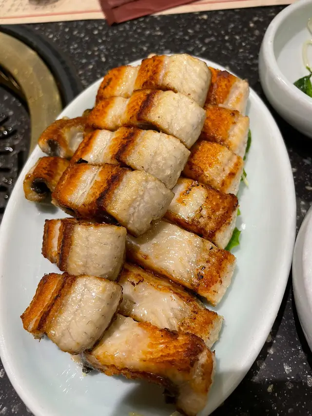 喜歡食韓國燒物者,必試之選!今次介紹呢間韓國餐廳,可以話比個10%服務費都覺得唔好意思,因為此餐廳係全程有專人幫你燒,我總覺得有人去處理,總好過自己去燒,因為專人始終最了解這種食物煮到什麼程度最好食。先講燒韓國淡水鰻魚,服務哥哥好仔細咁清潔工具然之後燒,當鉄板上有油漬,他馬上抹走,令燒出嚟嘅鰻魚沒有多餘油份,干身,香脆,鰻魚外脆內煙韌彈牙,不是冧口嗰種,真係食極唔停口。韓國燒烤不小得就係牛肋条,這間真心味道好,肉質高,牛肉熟成程度剛剛好,唔韌,有咬口,肉汁豐富。再嚟一個石鍋飯,冷麵,韓式煎餅。第二個高潮就係呢份韓式生牛肉,肉質鮮甜,配上雪梨条,增添一份脆口感覺,非常之好食。整體來說,這間餐廳係可以回味的餐廳,因為鎖費都頗高,可以三個月來幫襯一次。
