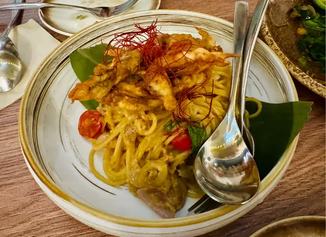 地鐵站步行過去相當近星期一late afternoon 都有數台客人我同另一半都揀咗招牌菜式炸髀配冬陰功面 $85(佢可以選擇粉絲、米粉、河粉、公仔麵etc,超多選擇😊😊)雞髀超大隻,皮脆,肉嫩,重點係好多汁👍🏻👍🏻冬陰功湯麵都好好食,雖然我個人偏向辣少少,佢呢個偏酸,但都係好出色嘅冬陰功麵,同埋幾開胃😎凍飲加$4飲品睇落唔大杯,但原來飲落都唔少,啱晒食重口味同煎炸嘢🫶🏻凍奶茶凍柚子蜜.最後埋單兩個人$178呢個份量同質素,相當唔錯佢仲有好多好吸引嘅菜式,下次會想再試😛…查看更多