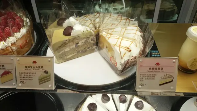 一係唔甜,甜得嘅只有焦糖先比到我覺得滿足心情麻麻,就去買左件cake開心下香蕉焦糖tart,因為焦糖所以買左佢外層嘅cream我麻麻地好,所以撥開左,入面有蕉粒,亦很甜,同焦糖又唔可以話夾or唔夾,就算佢加左好似焦糖嘅慕詩,食落焦糖味唔算突出,不過都幾好食幾滑,但朱古力餅底硬左d,佢隻膠叉根本冇可能吉得開,小小脆嘅口感相信係想整到個trat同蕉粒有對比,但硬嘅感覺比脆強烈,不過都係一個好嘗試,又幾好食…查看更多