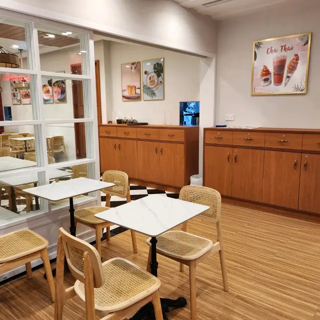 本身入面嘅餡都係斑斕醬,面頭一嚿牛油,再淋少少斑斕醬,好明顯係即整嘅,因為牛油嚟到嘅時候已經係半溶,佢冇額外比糖漿,如果你有需要可以問職員姐姐攞係有少少偏甜嘅,但係我呢個愛甜嘅人絕對接受得到,味道係可以嘅,我又覺得未去到好和諧,所以唔使特別叫佢杯泰茶都係標準,當然冇「紅色手指公」嗰間咁正宗啦,但係絕對頂吓癮係冇問題另外有杯佢哋嘅招牌凍咖啡,我就真係飲唔落啦,唯有拎返屋企再飲,個咖啡都係偏酸,但係好飲嘅。…查看更多