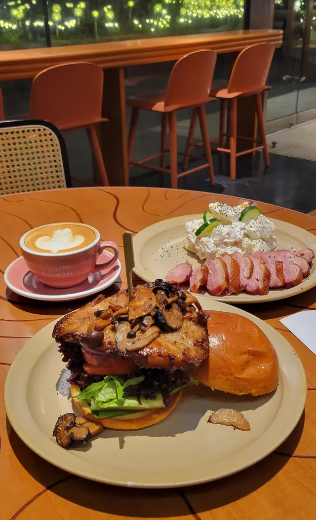 踏入12月 小朋友終於考完試抽到時間見人 去太古坊接朋友放工佢介紹公司樓下有間人氣生酮西餐剛好門口有聖誕樹和燈海 氣氛很浪漫全店以粉紅色裝潢 加一些植物座位之間很寬敞 空間感大用QR code落單 用餐90分鐘我地有幾款意粉和三文治都想食最後揀左沙律和漢堡share咖啡選擇特別多 仲有酒精咖啡特飲//香烤蜜糖鴨胸配南瓜薯仔沙律 $94//烤鴨胸份量很多 加左蜜糖甜身肉嫩口感帶油香 質地唔會鞋口 沙律醬混好粒粒南瓜薯仔和青瓜食得健康飽滿 又唔怕邪惡 岩晒我地//雜菌豬頸肉漢堡配芥末籽醬 $129//意想不到的驚喜! 豬頸肉厚切大塊經過燒烤 再加芥末醬 本身已經好吸引最喜歡漢堡包外脆內軟和輕微牛油配上很多生菜 洋蔥和蕃茄 性價比極高//鮮奶咖啡 $39//有兩款咖啡豆 揀左SOE Elias Shufe比較重莓味和花香 同時奶泡很幼滑拉花圖案清晰 果然係有質素//自家製咖啡胡桃蛋糕 $34//暖暖的磅蛋糕外表 比想像中濕潤焗得很香 而且蛋糕皮很脆口除了有幾粒大合桃食落帶咖啡味道 口感豐富…查看更多