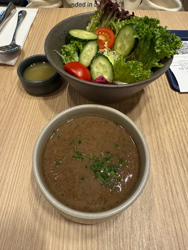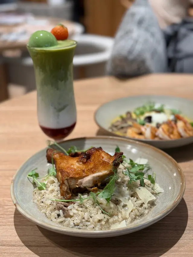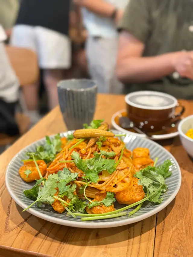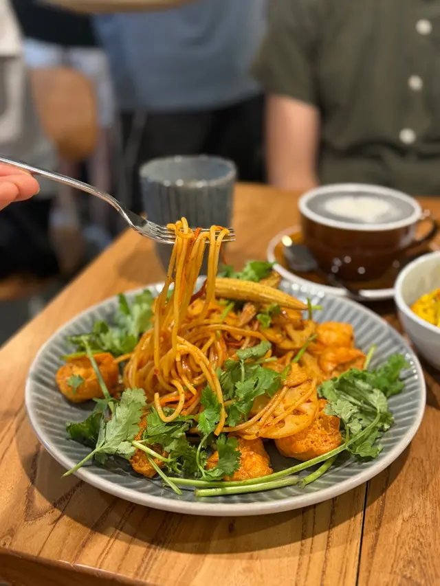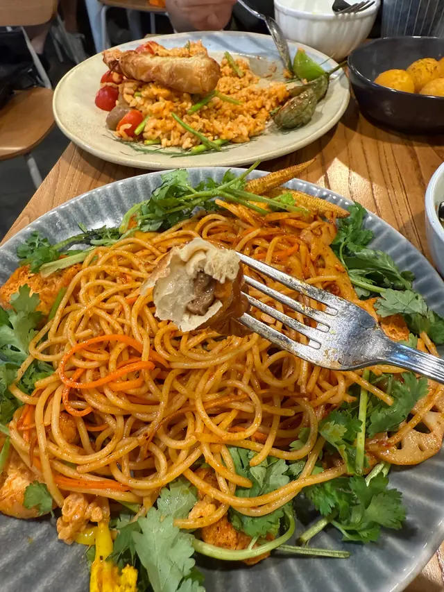 🥗 食得肉多想食返一餐素食!🌿 上網睇呢間水準唔錯又去開呢頭入去試吓。睇左陣menu 選擇唔算多不過以新派素食黎講,選擇都好貼得上潮流。落單叫左兩個主食,兩個小食同野飲。🦐🌶️ **泰式香辣冬蔭魷魚圈意大利飯** 落單前職員話魷魚賣晒轉兩隻蝦,應該幾受歡迎。個飯既軟硬度適中,煮得乾身小小濕。完全食到冬蔭公個味同酸辣,岩平時唔食開素既朋友。隻蝦用荀做,口感幾特別,下次有機會食返魷魚試吓!🌶️🌱 **川香麻辣蟲草花芫茜意大利粉** 一上碟就聞到好香既麻辣味,食落去個口充滿香濃既麻辣香,配合埋芫茜個香味幾好食,配料有豆卜,如果唔太食得辣夾埋一齊食可以減輕!🧀🥔 **黃薑焗福花配自家製乳酪** 薑味幾濃,就咁食普普通通,但係一加左個乳酪即刻昇華左✨,乳酪無乜味但就可以令到福花好食咗!🍠✨ **香芋番薯波波** 好有驚喜既一個小食,個皮炸得脆,食落煙韌唔太甜有番薯味,擺耐左都一樣咁脆!🥛🌾 **黑芝麻燕麥奶** 濃濃既芝麻香味,話佢係芝麻糊加燕麥奶都唔過份,當然質感滑好多,加埋淡淡既燕麥味,值得一試!🍵 **京都宇治玄米茶** 套餐包埋既飲品但唔係茶包即沖,茶入邊有原茶葉可以見到。飲落去好新鮮,比樽裝同茶包更香玄米味同無茶既澀味!😊🌱 整體質素好高,小小遺憾食唔到炸魷魚,下次食完再同大家分享啦!…查看更多