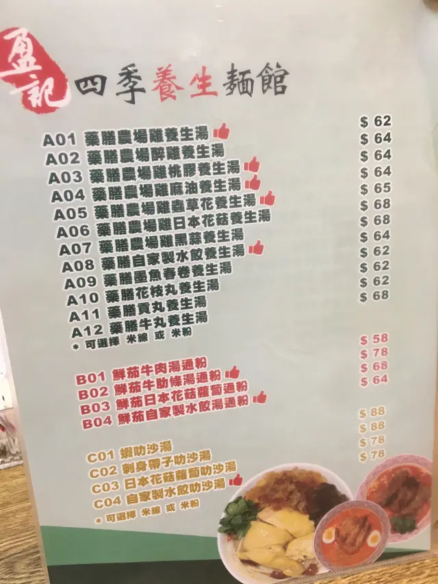 今日同朋友行街行到攰,就咁啱見到呢間盈記四季養生麵館🤤Menu有我最鍾意食嘅藥膳湯麵,價錢又幾抵幾吸引就行咗入去食~我同朋友各自叫左碗麵加share碗小食我叫咗個藥膳農場雞日本花菇養生湯米線🐥個藥膳湯底好夠味,證明用真材實料👍🏻👍🏻湯底熬咗好耐,雞肉夠嫩滑,煲得啱啱好😋最要讚既就係個日本花菇,好有菇味又大嚿加夠Juicy💦差唔多成碗食晒連湯都飲埋🤪🤪朋友嗰碗藥膳農場雞蟲草花養生湯米粉😆個湯底同雞就唔使再講啦👍🏻依家再配埋蟲草花,個配搭簡直係絕配💯更加帶出藥材同埋雞嘅味唯一美中不足嘅係個湯多左少少油🥲咁都難怪嘅 用雞煲出嚟嘅養生湯一定會有啲雞油 介意嘅話可以撇一撇走啲油先😗小食我哋就share咗個墨魚春卷🦑正正常常 應該係用墨魚肉打出嚟嘅肉卷 不過不失啦 因為始終主角都唔係個春卷最後埋單九折咗係$157 兩個人喺灣仔食個晚飯來講算係性價比非常高👍🏻👍🏻建議大家可以嚟呢度試下養生湯~…查看更多