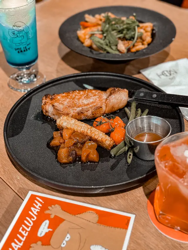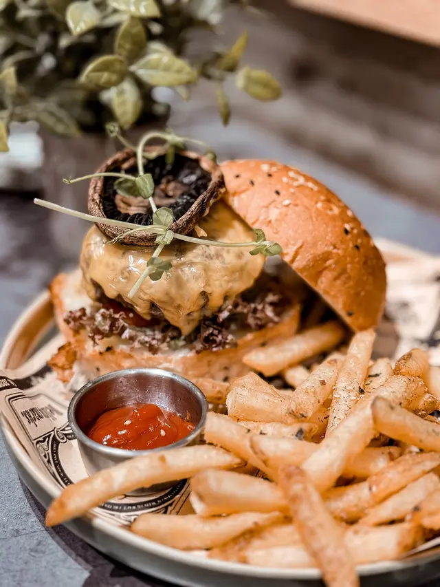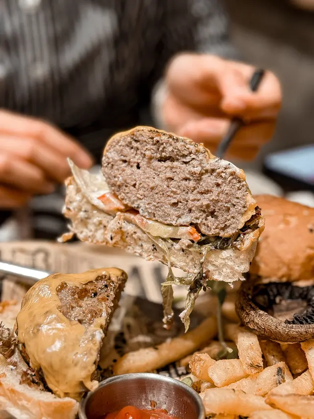 又出城搵食🏙️今次黎左呢間樓上cafe..裝潢走工業風.呢度仲有個180°C海景🌊六點黎到坐到窗邊位 可以邊欣賞夜景邊食晚餐🤩.ᐟ 🅞🅤🅡 🅞🅡🅓🅔🅡 .ᐟ𖤘 黑松露大啡菇手打和牛芝士漢堡|ᴴᴷᴰ𝟷𝟺𝟾麵包搽左牛油微微烘過,外脆內軟.自家手打和牛超厚身,口感偏向紮實.配上黑松露醬 好香💛薯條超級香脆⸝⸝.ᐟ⋆𖤘 火炙北海道帶子明太子意粉|ᴴᴷᴰ𝟷𝟺𝟾去到邊都要叫明太子意粉😂呢度意粉醬汁濃稠度整得剛剛好,有一定嘅流動性 吾會搞到個賣相乾爭爭咁.醬汁同明太子量多 每條麵條都沾滿醬汁😎裡面仲加左啲蟹柳絲添!帶子微微煎香,肉質肥美鮮甜ᢉ𐭩𖤘 提拉米蘇|ᴴᴷᴰ𝟼𝟾賣相好適合打卡📸甜而不漏 仲有啲脆脆增加口感添.ᐟ𖤘 提拉米蘇咖啡|ᴴᴷᴰ𝟺𝟾濃縮咖啡上面鋪左綿密滑溜嘅cream >⩊<再加上一小舊tiramisu同樣系賣相一流!咖啡系nutty口感 好香濃ᯓ.ᐟ𖤘 岡山蜜桃咖啡|ᴴᴷᴰ𝟺𝟼美式咖啡加入左蜜桃汁🍑口感清新 🍃對於吾太中意太濃咖啡嘅人黎講會易入口啲.…查看更多