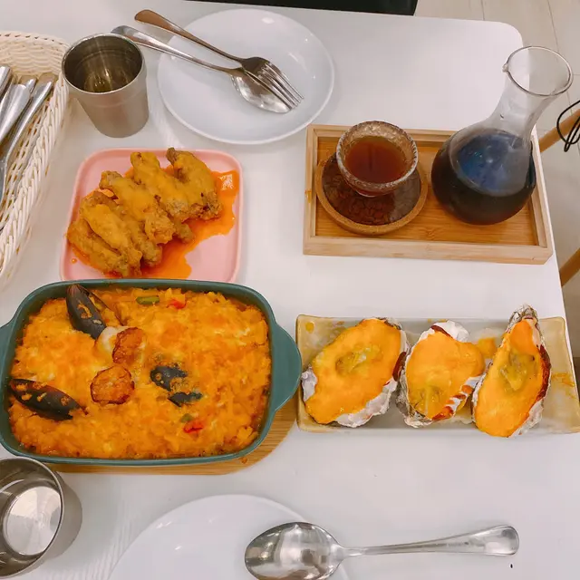 今日去左馬鞍山搵食,原來開左好多餐廳,今次就試下呢間啦。咸蛋黄單骨雞翼 $68我最愛既雞翼,仲要單骨!外層香脆,肉質嫩滑,加埋啖啖都係好香好重既蛋黄味,口感唔錯!香濃芝士焗蠔 $78焗蠔上面有好多芝士,好邪惡。底層仲有薯蓉😛薑黄西班牙海鮮焗飯 $138海鮮好足料好新鮮,有青口,蝦🦐,大大粒帶子,整體味道滿意!☕️ Cold Brew呢杯好香咖啡味,飲落淡淡味帶微酸,想飲淡淡味咖啡又唔想太濃既朋友可以試試。Brownie 配意大利雪糕 $65最後上埋甜品!賣相好靚好岩打卡既布朗尼!入口微微暖,香濃既朱古力味,加埋雲呢拿味雪糕食,食完好滿足!…查看更多
