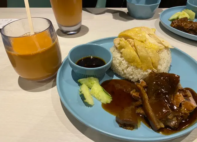 今次走進中環尋找一間星馬菜餐廳環境也不錯,座位寬躺選了一個套餐$128包括海南雞飯、肉骨茶及特飲海南雞很嫩滑,還有配上3款醬料可惜油飯不夠香油還有點硬肉骨茶味很濃,足料飲品:金桔檸檬很大杯,味道不錯整體很滿意下次會再光臨,試試其他食物😊…查看更多
