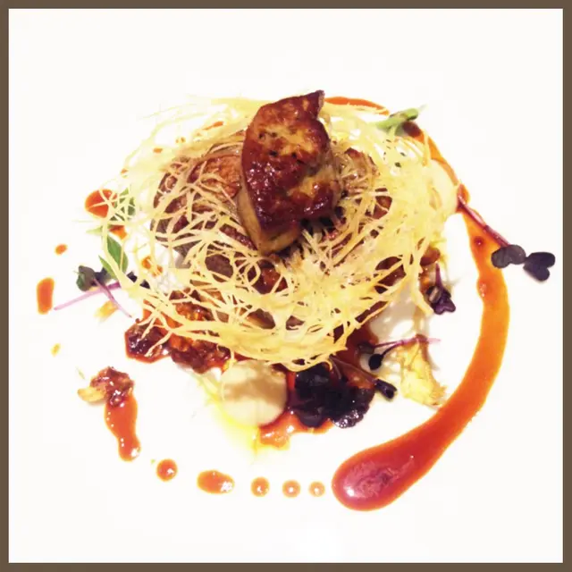 A new shop in star street wan chai. Lots of fresh flowers at the entrance and once stepped in, i felt like in france! Very nicely renovated, elegant crystal lightings, girly floral plates and spacious tables. There is no set lunches or dinners, everything is a-la-cart. We ordered the foie gras wunton, a pork belly n the steak.The wuntons were deep fried with fig and sauce cooked mushrooms and lily pedals as sides. Sweet and salty. A quite heavy entree to start with. The steak came with hot mushroom and beef brooth dip sauce, its nicely grilled outside n tender juicy inside, good!The pork belly is cooked with sweet sauce again but its too fatty (ofcoz, its pork belly). But indeed its niceThe staff are friendly and polite, we had a great time there!…查看更多