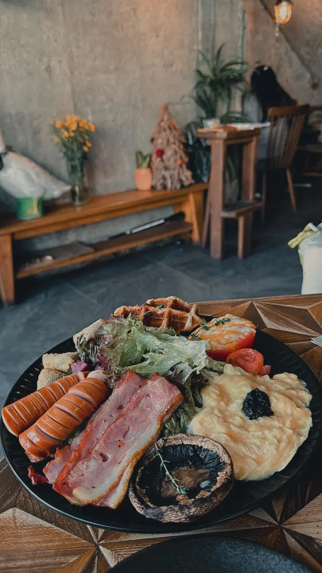 大圍呢間cafe開業時間唔算好耐,但係人氣就一定夠哂高,無論平日定假日一到食飯時間都總係要等位,今次終於下定決心去⋯排隊😎⭐️推薦 5粒星⭐️⭐️⭐️⭐️蟹籽蟹肉明太子忌廉意粉🍝 $108嚟到嘅時間熱辣辣,蟹籽夠哂多,仲好有誠意加埋櫻花蝦來煮👍🏻意粉彈牙而且吸收左creamy醬汁,再加埋明太子鹹味配合得啱啱好👍🏻平時Cafe既主食都係份量偏小,哩個份量十足,大食既我都夠飽🤭⭐️盤子大早餐🧇🍳🥓$138唔單止係個盤大,食物嘅份量都非常之大!而且每個種類都勁有誠意,當中牛角窩夫、菠菜芝士薯仔波、黑松露炒蛋、煙三文魚同大啡菇味道好有驚喜,明白點解每一枱都係必點👍🏻飲品方面呢到嘅咖啡☕️同花茶🌹都相當滿意,下次可能會選擇下午茶時間再嚟,避過人潮,再試埋其他食物同飲品🧡…查看更多