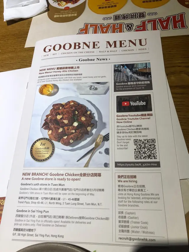 今晚去左尖沙咀行街街😹,行到攰又肚餓,見附近有goobne chicken ,就馬上上左去。上到去好好彩職員安排咗個近窗口既位置俾我地去坐,可以一路食住韓國炸雞,一路望下出邊個夜景,成件事好賞心悅目。由於我地得兩個人食所以唔可以叫得太多野,所以就決定叫雙拼烤雞(原味+蜜糖)同埋叫返個韓式海鮮湯。烤雞黎到上枱枱,即刻食就啱啱好,食落去有少少甜,肉質鮮嫩,唔會overcook。真係食到停唔到口,而且炸雞佢仲附有三種唔同味道既醬料,等大家一路食烤雞,一路點去提供既醬料,醬料有辣,亦有唔辣,任君選擇。是我比較鍾意食芥末醬,因為真係好襯蜜糖烤雞,辣又唔係好辣,啱晒用黎吊味一流我第一次飲佢果個韓式海鮮湯,我覺得佢真係好抵飲因為材料好豐富,青口真係好多,我諗冇十隻都有八隻,飲湯飲到最後都仲有得食真係好神奇,湯亦都鮮味十足(可能真係好足料!)同埋仲可以每人分到兩至三碗,抵飲之選!!!咁食烤雞冇理由唔叫野飲ga ma,所以叫咗somersby同韓國好出名既mojito。杯mojito飲落好重薄荷味,同埋加左soda 水,一路食雞一路飲mojito,真係爽…查看更多