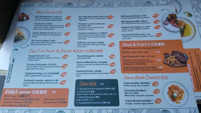 2樓由另一位店員負責,入坐後職員解說點2人餐,外加單點主餐牌主食仍然可以有一項5折。 態度有善。最終我們決定單點了3款食品。BBQ Ribs 燒烤醬豬肋骨 (使用Openrice 半價優惠) 全餐最好食就是這個的配菜:薯條但其實豬肋骨也不差,就是肉有點乾,很有口感那種。BBQ Pulled Pork Crepe 慢烤手撕豬肉可麗餅這個可麗餅……由可麗餅到手撕豬都很…… 有口感,又乾又韌。 特別是那個可麗餅,媽媽的用後感是覺得可麗餅不應用於主食。但我想說……我有吃過好吃的,不知道點選帶有芝士的可麗餅會否好一點……嗎? Pan Seared Hokkaido Scallop Pasto linguine 香煎北海道帶子伴香草醬扁意粉。可能是我不太懂扁意粉吧,這個偏意粉很有嚼勁,吃起來很有口感,堅韌呢~ 帶子伴香草醬好味,但就是那個扁意粉比我想像中硬。…查看更多