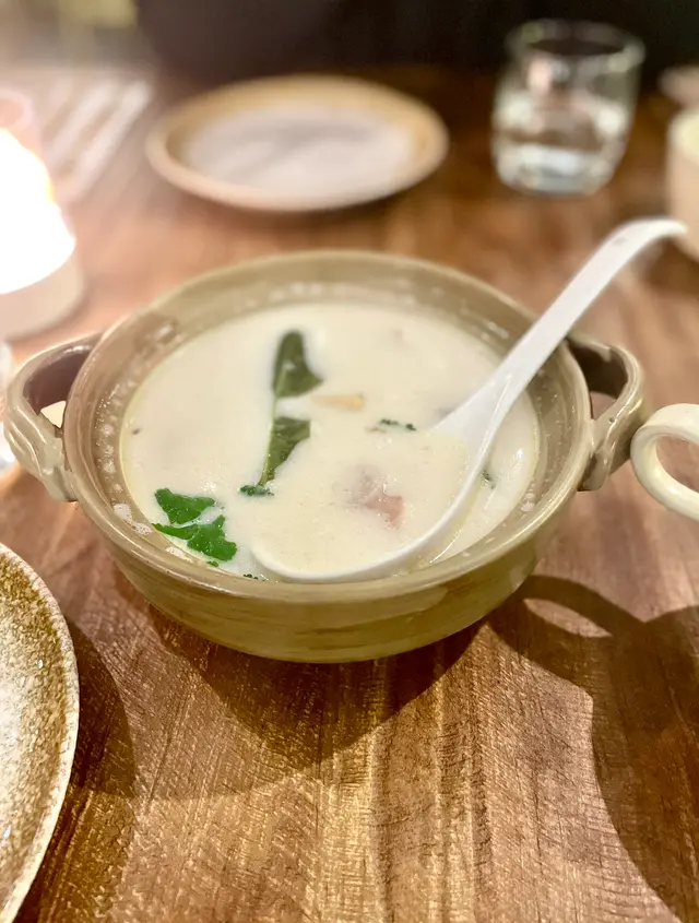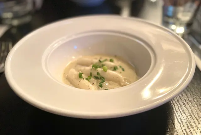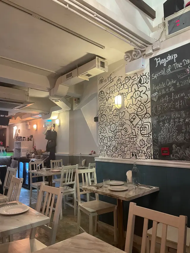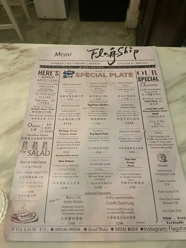 約了朋友在灣仔區飯聚,特意在網上尋找特色餐廳。見這間Flagship的評價頗高,而且菜式特別,所以就決定一試。餐廳位於船街的角落,很有靜中帶旺的後花園感覺。裝潢有小餐館的cozy感,適合朋友聚會聊天。雖然餐廳主打西餐,但菜式又加入中式元素,算是在市場中少有,難怪能吸引到一聚食客。是晚7點半左右已全場滿座,所以建議要提早訂位。麻唔辣四川蜆 ($168)蜆的份量頗多,而且肉夠厚大夠鮮味,吃得出是高質食材。調味的醬汁也很出色,花椒粒的香味重,帶點微微的麻味,但一點也不會辣,是一個十分惹味的開胃菜。21天熟成厚切豬排 ($338)菜式擺盤很精緻和有心思,一上枱已覺十分吸引。豬排非常有份量,但切下去時見到仍保有很多肉汁,吃在口裏非常嫩滑,一點豬肉的嚡口感也沒有。這種厚度的豬排能做到這種嫩滑感,真的一點都不簡單。菜色可算做到色香味俱全。大閘蟹羔燴飯 ($368)這個菜式用上中式傳統沙煲上碟,已意味着與一般的西式燴意大利飯有所不同。一試果然吃出香濃的蟹黃香味包裹着意大利飯,加上絲絲蟹肉和黃澄澄的硬蟹羔,令人忍不住會一口接一口的吃下去。整個菜式的調味帶中式風格,但又和意大利飯很夾,是一個令人驚喜的菜式。…查看更多
