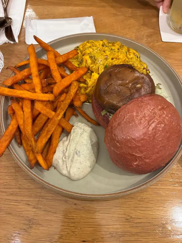 今已經第二次體驗,再黎咗「Reaction Coffee Roasters」,環境幾舒服——磚牆加燈飾夠靜謐,座位闊落,冇人等位,所以唔限時,坐得好chill。店員服務有禮,上餐節奏剛好。我點了黑松露炒蛋菇漢堡,菇扒juicy、炒蛋creamy,配番薯條幾惹味;朋友就點了牛柳沙律嘅牛柳夠嫩,搭菜同杏脯幾清爽。巴斯克蛋糕綿密唔太甜,Dirty同柚子梳打都順口。坐咗成個鐘,全程都好自在,$410蚊嘅體驗幾抵,會再再enocore…查看更多