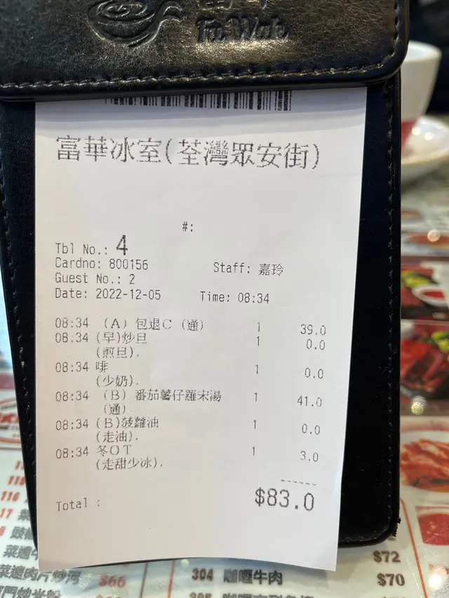 服務態度良好 富華冰室 (秋雲大廈) 2022-12-05今次不是食評,所以忘記拍食物照片。事緣侍應下錯單,與我們叫的不同,送上來時我們說下錯單,我有D不耐煩,但先後有二個侍應埋來說對不起,並想和我更換食物,她們非常真誠及有禮貌,搞到我不好意思,所以我說冇所謂不用換。今時今日集團式茶餐廳有咁嘅服務,真係值得一讚。(其實食物出品也不錯)…查看更多以上食记乃用户个人意见 , 并不代表OpenRice之观点。赞好分享服務態度良好 富華冰室 (秋雲大廈) https://s.openrice.com/QrLT0Sif600检举 张贴 评分--味道4环境5服务4卫生--抵食用餐途径堂食