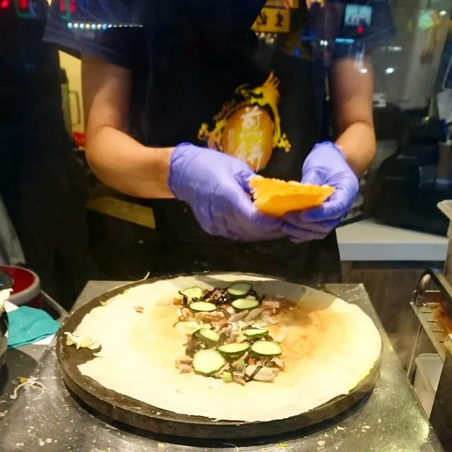 每天番工都經過一次,望入玻璃窗內整煎餅既廚房,都會覺得好吸引,之前試左一次,企響度等幾份先到我,條街又熱,不過果次趁熱食,好好食值得等,不過openrice最近可以下單自取就好方便啦,首次仲平廿蚊超抵,去到即刻拎,lunch就再食一次,真係要記得趁熱食,遲左去拎,皮凍左少少,雖然入面仲係好好味,始終會有少少影響,另外仲試左椰子沙冰,解暑真心推介!!我叫既係北京烤鴨煎餅,望住佢整都好治愈,皮上加隻蛋一齋烘,都係第一次見,增加左皮既口感,加鴨加青瓜,最緊要加薄脆!! 佢汁都查幾次,我覺得好有誠意!!不過真係會食到成面係,因為好厚身…查看更多
