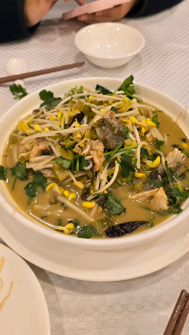 原本是奔著 "避風塘焗蟹(HK$288/兩隻)* 去的,我要求1開2不要斬碎件及另外叫了 "酸菜水煮龍躉件(HK$148)",經理入廚房Order出嚟就話D蟹沽清了,咁唯有加個 "琥珀青芥安格斯牛粒(HK$168)",初初以為酸菜水煮龍躉件係水煮魚既朋友,原來唔係,碟菜一上枱我就聞到好勁既大豆牙味,我本身唔食大豆牙,於是將所有大豆牙揀出,最後剩番5塊龍躉肉(炸過)、5塊魚骨/魚尾、同啡色既汁,約10分鐘享用完,繼續等下一道菜。到琥珀青芥安格斯牛粒,我以為會有芥末味,原來全是豉油味,D牛粒好咸同乾,值得慶幸是琥珀無油益味😅,趕快享用完轉場去食糖水🫠🫠。埋單HK$385(茶位17/位連加1)。經過咁多年呢間酒樓仍然䇄立不倒,一定有佢既生存之道,除了靠一班老街坊支持,仲有廚師們既精心製作,佩服。…查看更多