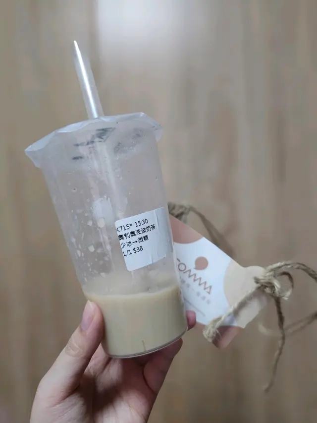 路過旺角口渴諗住試下新嘢,點咗杯奧利奧波波奶茶。到手容量大概550ml,就承惠38。唔知要讚定彈,個茶湯係幾好,綠茶茶底幾順口。問題亦都出左係度。。。點解奶茶可以完全冇奶味🫠🫠🫠正常奶茶d奶係會掛杯架嘛,呢杯奶茶係冇既。成杯嘢,茶湯還茶湯,奶就得個顏色睇到佢有加,oreo碎沉底,而且冇牛奶味陪襯顯得好突兀又冇口感。叫咗微糖,唔知係咪因為咁連珍珠都係冇味道啦。珍珠又有d overcooked,少少蓉蓉爛爛咁。唯一可以讚既應該得個包裝,幾環保,紙套+麻繩,可以重用(不過大機率都唔會有人咁做🤣)。…查看更多
