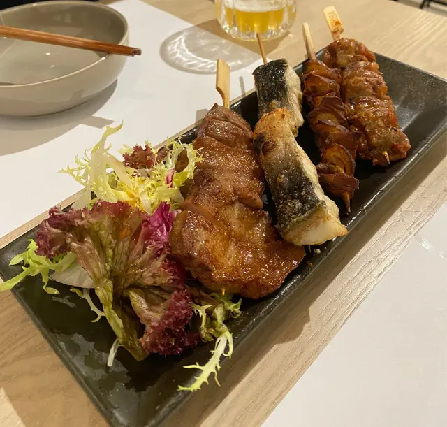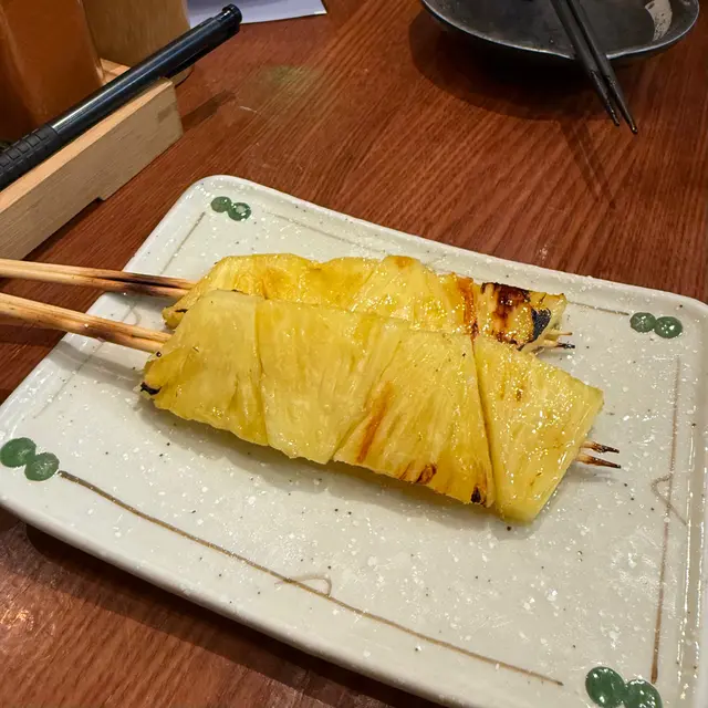 呢間嘢好似幾出名,喺旺角銅鑼灣都有分店。一場嚟到中環地區,就諗住過嚟試吓啦。自問都食過唔少差唔多價錢嘅串燒店,呢間嘢唯一嘅優點就係好平有$10/$15/$20串嘅選擇,但係就要兩串起跳。第一次食,咁梗係要叫啲不嬲去開串燒舖要叫嘅款式,例如係雞肝、雞皮、雞翼、牛舌芯、燒茄子等,見到食評有人推介燒鵪鶉蛋串,所以都叫黎食吓。其實$10-$15 無乜太岩叫。但生啤$48買一送一係幾抵飲。大致上嘅評價就係味道普通,有得揀唔會再回訪,有唔少差唔多價位味道更好嘅選擇。但overall叫對得住個價錢囉食評時間:黑松露雞肝,極普通,燒到全熟,冇黑松露味。雞翼味道普通,冇燒到外脆內嫩嘅感覺,就普通燒雞翼。燒菠蘿: 就正常燒菠蘿燒蠔: 係平,$48/2 隻,但完全無蠔味,食完唔知食咗咩燒鵪鶉蛋串:直頭係唔知點解會有呢個菜式,仲要有人推薦勁伏燒牛舌芯: 佢冇寫厚切,所以係超薄,而口感一般,可以唔洗叫