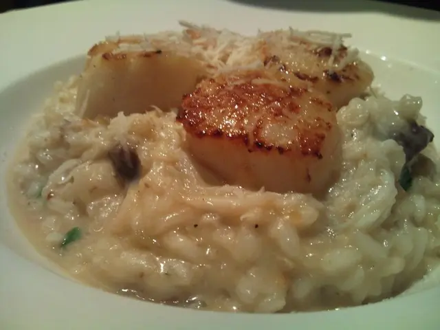 ) IN FRESH BASIL TOMATO SAUCEI am a BIG BIG BIG... FAN of basil... The aroma of basil is the perfect match with tomato!! :) So, scored high of this dish... but seriously... the chef might alter a little bit for Hong Kong style... the sauce could be more stronger in flavour of herbs and the pasta was well done instead of al dente... RISOTTO WITH CRAB MEAT AND SEARED SCALLOP IN PARMASAN CHEESE SAUCEAfter a bite of the scallop... I told my friend that if the scallop I had at PETRUS scored 10 as perfect... this one would be 7.5... which was pretty high for a small restaurant. :) There was plenty of crab meat and again... slightly Hong Kong style again... could be more creamy ... al dente... and stronger cheese flavour... but still nice dish!! :)CARBONARAThis was the the dish I was afraid to eat when I was a chef... because it was SO FAT... if you made it the most yummy way... hehe