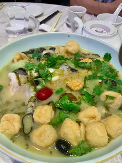 昨晚同幾個老友收工後,約咗喺將軍澳常聚嘅酒樓食晚飯。今次特意點咗條龍躉酸菜魚,果然冇令人失望——魚片厚切爽滑,吸盡酸菜湯底嘅精華,啖啖肉又帶點韌性,比平時食開嘅桂花魚更夠嚼勁,連湯都飲埋。清蒸阿拉斯加長腳蟹簡單鮮味,蒸得時間剛剛好,蟹肉一梳梳剝出嚟,蘸少少豉油已經鮮甜到不得了。白切雞依然係水準之作,雞皮爽脆,蘸埋薑蔥油,食落特別香口。菠蘿咕嚕肉炸得外脆內軟,酸甜汁開胃又不膩口。最後飲碗真材實料嘅花膠煲雞湯,濃郁暖胃,飲完成個人都滋潤晒。今餐食得特別滿足,每道菜都見功夫,尤其係龍躉同長腳蟹,真係食得出用料新鮮,下次屋企人生日一定要再嚟!…查看更多