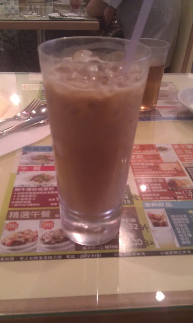 )看了一會餐牌,我叫了一個早餐C,有火腿通粉,煎蛋,牛油方包一片,還加了兩元要了一杯凍咖啡。接著,我還另外叫了一件西多士。 (我到每間冰室必食的東西,接著下來的冰室旅程也一定會有呀